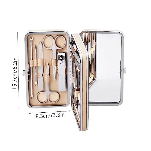 BybAgs Pedicure Set Set Manicure Forbici for Unghie in Acciaio Inossidabile Kit for toelettatura con Specchio e Custodia da Viaggio in Pelle Doppio Strato for Uomo Donna Acciaio Inox Forbici