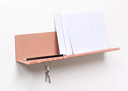 Byde Helke - Mensola da Parete, 44x9x9 cm, 5 Ganci e Porta Cavi, In Lamiera di Acciaio Verniciato a Polvere, Organizer per Chiavi e Lettere per Ingresso, Corridoio, Cucina, Colore Beige Rosso