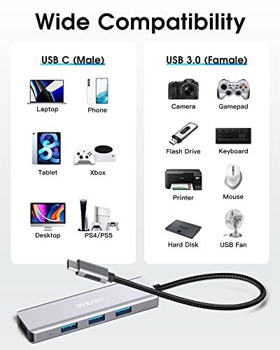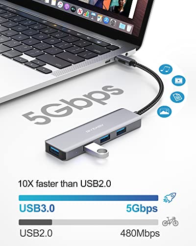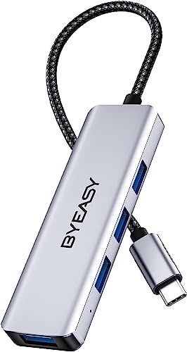 Hub BYEASY in alluminio a 4 porte da USB C a USB 3.0 con cavo intrecciato di tipo C, un lungo cavo micro USB, manuale utente, servizio clienti amichevole e garanzia di rimborso di 30 giorni