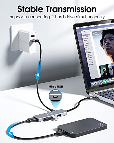 BYEASY Hub USB C, Hub di tipo C per computer portatile, adattatore da USB a USB C con porta di alimentazione micro USB, splitter USB C compatibile per laptop USB C, MacBook Pro, MacBook Air
