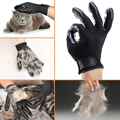 BYETOO Guanto Spazzola per Cani Gatto,Guanto per Massaggio Animali e Pulizia Peli Efficace per Cani Gatti Coniglio Cavallo Cane Gatto,di Taglia Piccola,Media e Grande e Pelo Lungo e Corto,Nero - 1Paio