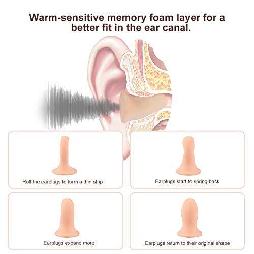 Rimbalzo lento ragionevole: rimbalzo automatico, rimbalzo lento di 60 secondi, morbidi tappi per le orecchie per una migliore aderenza nel condotto uditivo. I tappi per le orecchie in schiuma morbida e atossica con memory foam incorporati durano a lungo senza gonfiarsi le orecchie.