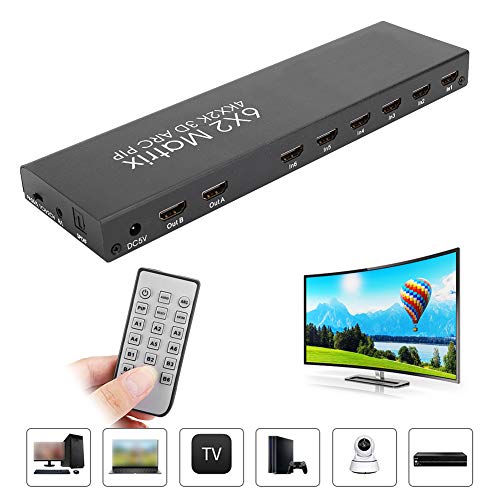 Byged Splitter Switch Matrice HDMI 6x2, Splitter Switcher Video HDMI Matrix 6 in 2 4 out, Supporto 3D 720P Dolby True HD con Telecomando e Alimentatore(Me)