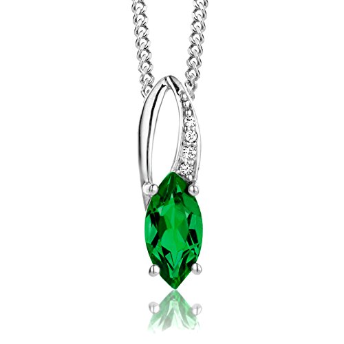 ByJoy Collana Ciondolo Donna con Catena Smeraldo e Zirconi taglio Brillante Argento Sterling 925 Catenina 45 CM