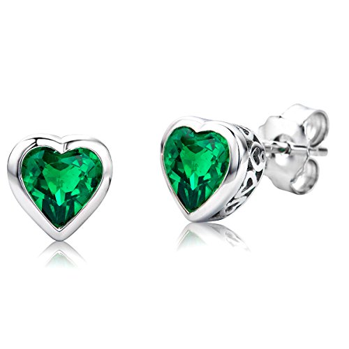ByJoy Orecchini Donna Cuore a Lobo Piccoli con Smeraldo in Argento Sterling 925