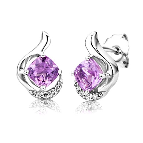 ByJoy Orecchini Donna a Lobo Piccoli con Ametista e Zirconi taglio Brillante in Argento Sterling 925