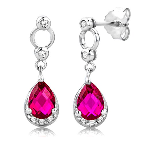 ByJoy Orecchini Donna Pendente con Rubino in Argento Sterling 925