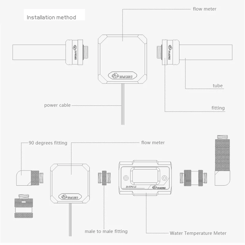 Bykski Acrylic Flow Meter G1/4 Thread Water Cooler Flow Meter Coolant Filter Indicat Computer Cooler Fittings 3-Way Holes