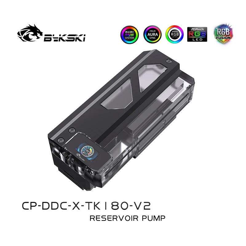 Bykski CP-DDC-X-TK180-V2 RGB Rectangular Reservoir with Digital Thermometer