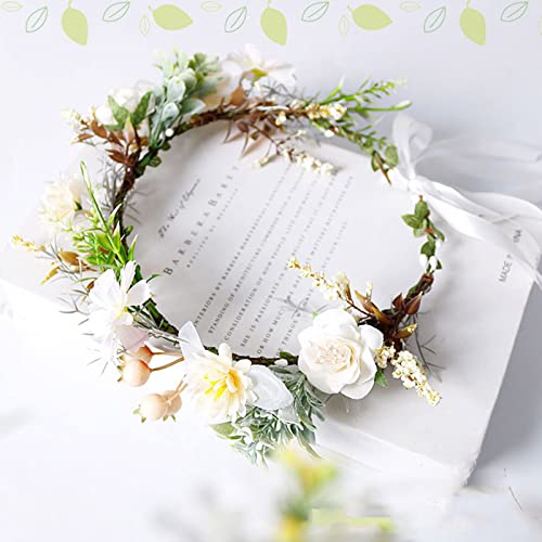 Bymivofun Corona di Fiori Bianchi, Fascia Floreale da Sposa, Corona di Fiori da Sposa, per Matrimonio, Riprese, Cerimonia, Festa, Festival