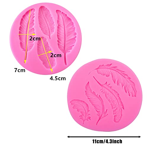 Bymivofun 2 Pezzi Stampi per Fondente di Piume, Stampi per Torte in Silicone a Forma di Piuma, per Sapone, Decorazione di Torte, Biscotti, Cioccolato, Caramelle, Caramelle, Decorazione di Dessert