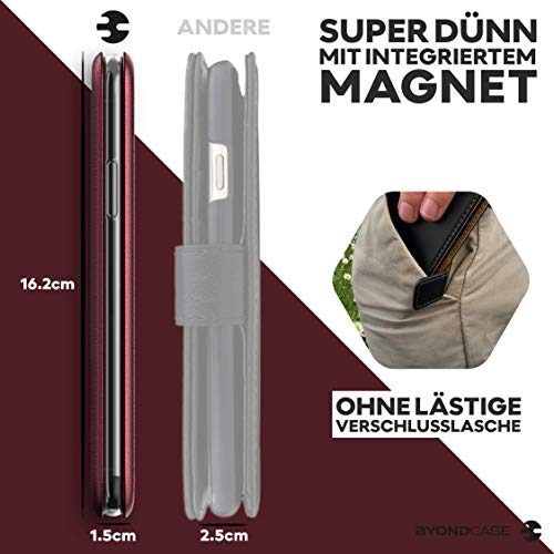 BYONDCASE Custodia per iPhone 8 Plus, colore rosso, per iPhone 7 Plus, custodia a portafoglio in pelle, per iPhone 8/7 Plus, protezione completa a 360 gradi, compatibile con iPhone 8/7 Plus Case