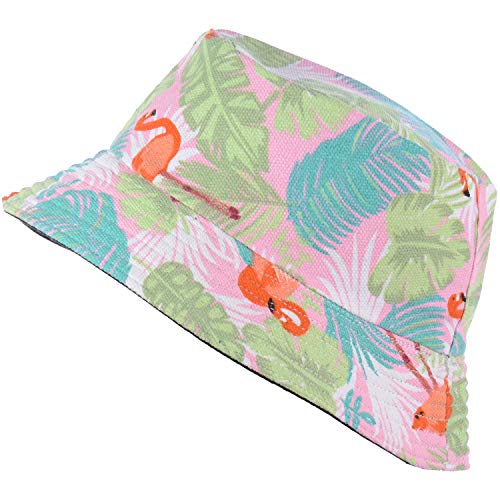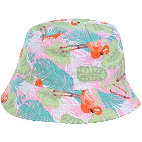 BYOS - Cappello da sole a secchiello da pescatore con stampa nera, pieghevole, molti modelli, Fenicottero fantasia pastello, Taglia unica