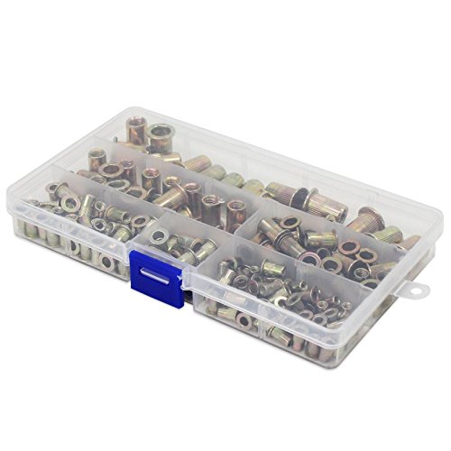 Byou Rivet Dado,Dadi per Rivetti 165 Pezzi Zincato Acciaio al Carbonio Assortimento di Dadi Filettati in Scatola di Plastica M3 M4 M5 M6 M8 M10 M12