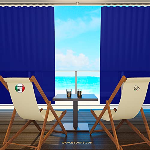 Byour3 Tende da Sole per Esterno con Anelli a Caduta Impermeabili Antimuffa Stoffa Tessuto Lavabile Teli Parasole Laterali Gazebo pergola Tendoni PORTICO (Blu Royal Qualita' A++, L.350 x 315H)