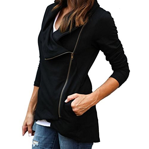BYSTE Da Donna Tinta Unita Felpa Da Donna Cappuccio Cerniera Con Zip Felpa Giacca Cappotto Maglione (XL, Nero)
