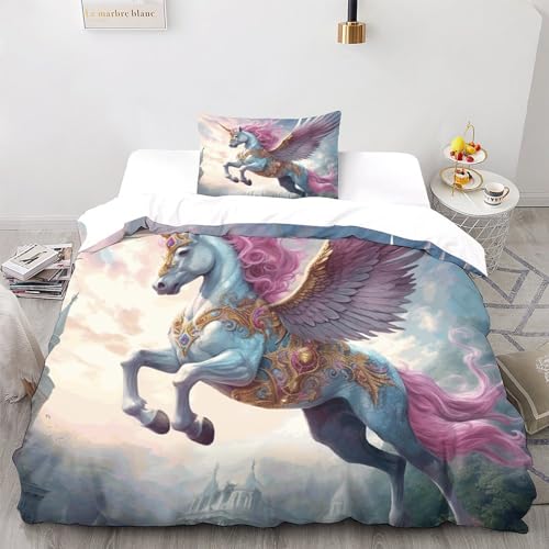BYTUGI Copripiumino Letto Singolo Unicorni 2 Pezzi Biancheria Da Letto 3D Gold Colored Copripiumino Set Per Adulti Duvet Cover Microfibra Con Federa Ipoallergenico Facile Da Curare