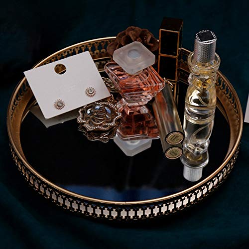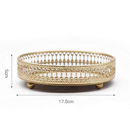 Bzocio Vassoio Portaoggetti per Gioielli nel Ferro Dorato Specchio nel Vetro Gestore per Trucco Vassoio per Esposizione Decorativo da Dessert per Cosmetici da Tavolo 17,5 Cm