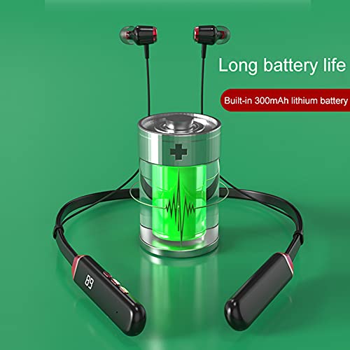 C-LARSS Auricolare con Archetto da Collo, Bluetooth 5.0 Ricaricabile con Display Digitale A LED Leggero Auricolare Stereo con Archetto da Collo per L'esercizio Rosso