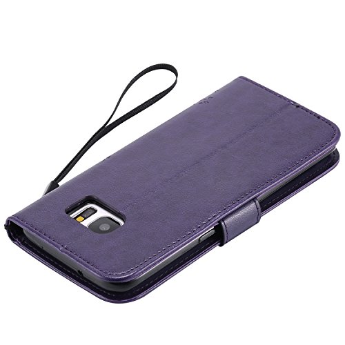 C-Super Mall-UK Samsung Galaxy S7 Edge custodia, sbalzato Albero Gatto farfalla Modello PU Pelle Portafoglio Stand Flip cover per Samsung Galaxy S7 Edge
