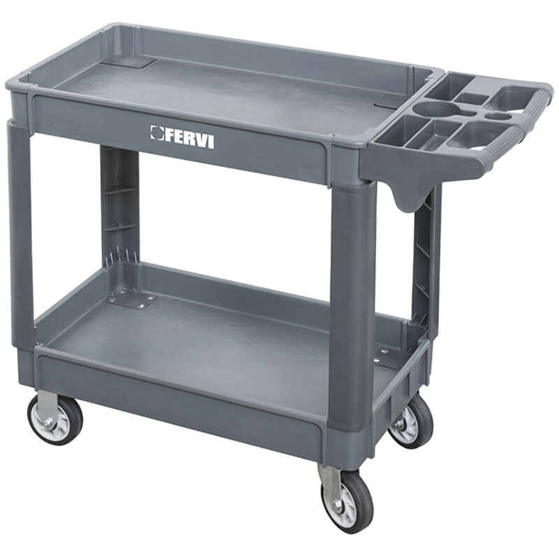 Il carrello in polipropilene a due vasche Fervi C065/2 è un prodotto ideale per la movimentazione di carichi stabili, facilmente disposti negli appositi contenitori o sui ripiani, per poter utilizzare la propria attrezzatura ovunque sia necessario operare.Questo carrello realizzato in polipropilene risulta eccezionalmente resistente, con due piani di carico sovrapposti ed un pratico manubrio con contenitori per la guida del carrello.Dotato di una coppia di ruote fisse ed una di ruote pivotanti, risulta così mobile e facilmente trasportabile. Tipologia: Carrello Utilizzo: Professionale, Officina Materiale: Polipropilene Temperatura di esercizio: -20°C a +50°C Portata: 250 kg Ruote: Diametro 125 mm Dimensione: 101x44x84 cm Peso: 15,5 kg
