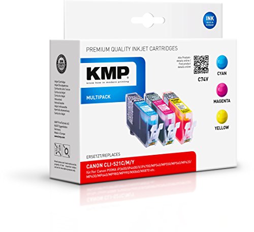 KMP C74V, Confezione cartucce per Canon Pixma iP3600/iP4600, colore: 1 x Ciano, 1 x Magenta, 1 x Giallo [Importato da Germania]