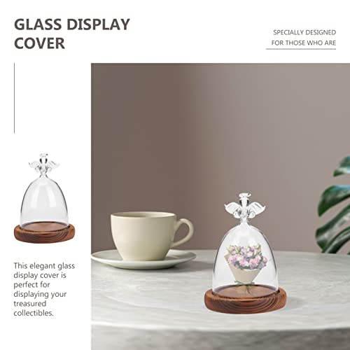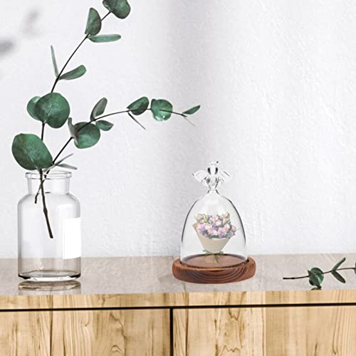 Cabilock Chiaro Cloche Cupola di Vetro con Base in Legno Angelo Vetrina Campana Figurine Decorativo Incantato Fiore Cupola Tavolo Fulcro per Fata Piante Succulente Illumina Arredamento
