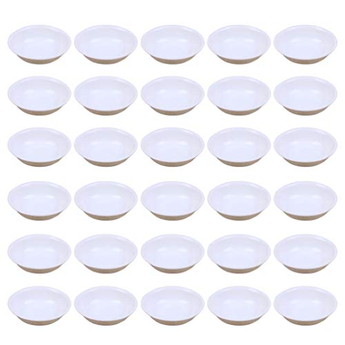 Cabilock - Set di 30 ciotole rotonde per salsa di soia, in melamina, per salsa di pomodoro, soia, barbecue e altri (bianco)