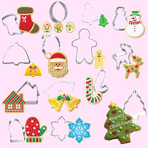 Cabilock - Set di 14 formine natalizie a forma di fiocco di neve, pupazzo di neve, campana, guanti, motivo biscotti, sandwich, in acciaio inox, a forma di vacanze, feste, per bambini