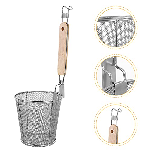 Cabilock Per La Pasta Cestello in Acciaio Inox Maglia Spider Filtro Gnocco Noodle Skimmer Cucchiaio con Manici in Legno per La Cucina 14 Centimetri