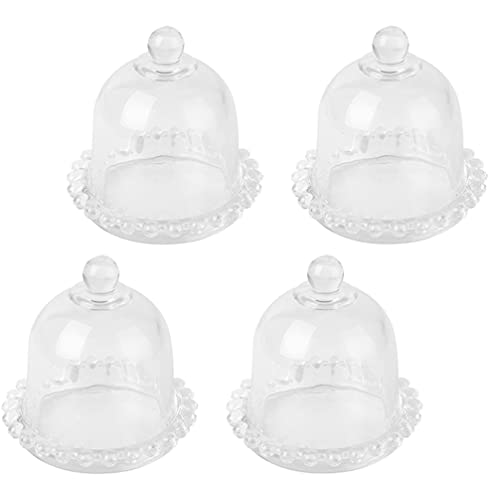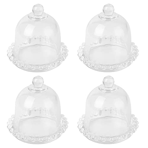 Cabilock 4 pezzi di vetro trasparente Cloche Dome con base per display per torte, coperchio, campana in vetro, per candele, dessert, formaggio, candy, piante grasse, 10 x 11. 5 cm