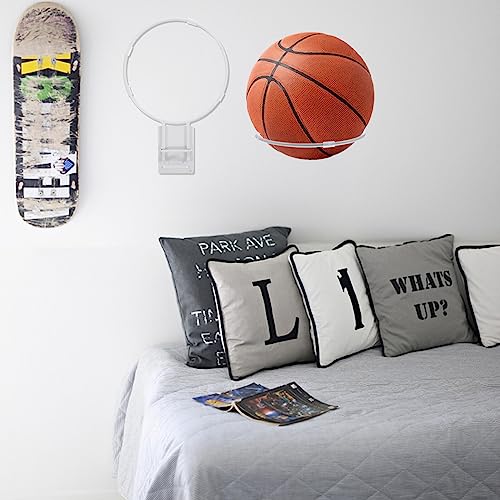 Cabilock Portaoggetti Calcio Supporto Parete Per Basket Display Porta Palline Rastrelliera Porta Palline Espositore Basket Ripiano a Muro Bianca Pallacanestro Metallo Scaffale Di Stoccaggio