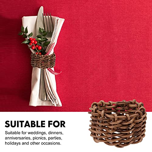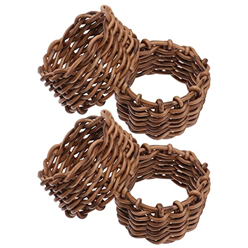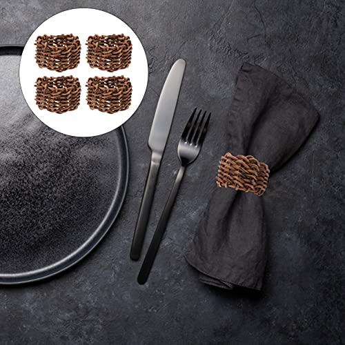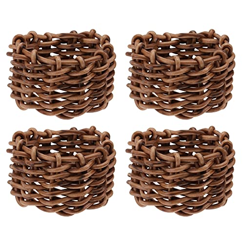 Cabilock Portatovaglioli in Rattan, 4 Pezzi, Stile Rustico, per tavoli da Pranzo, Decorazione da Tavolo per Natale, Matrimonio, Compleanno, Feste