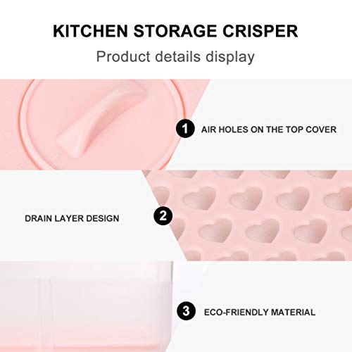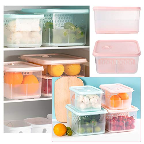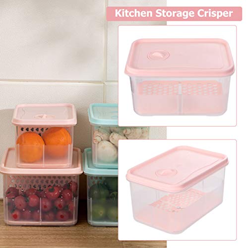 Cabilock Scatola Frigo Frigo Cucina in Plastica Contenitore per Drenaggio Alimenti Scomparto Diviso con Coperchi per Frutta Verdura (Rosa Taglia Piccola)
