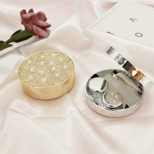 Cabilock Kit Scatola Porta Lenti a Contatto Kit Portaoggetti Portatile in Ammollo Portatile Custodia in Plastica per Occhiali con Pinzetta Stick (Dorato)