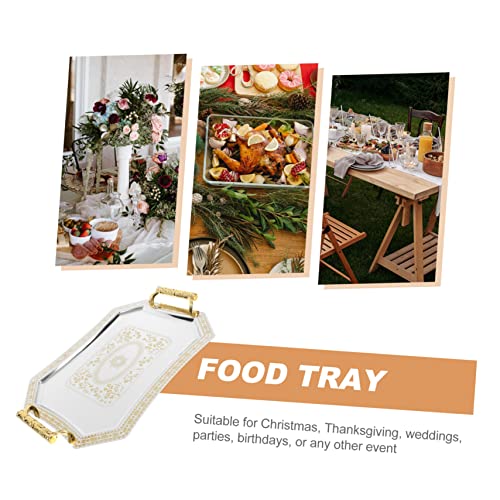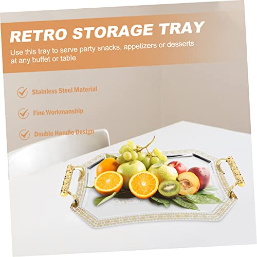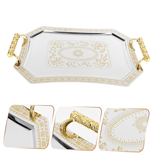 Cabilock 1 Pz Con Servizio In Acciaio Inox Snack Vassoi Antipasti Maniglie Rettangolari Dorate Vintage Cucina Cena Torta Gioielli Metallo Antipasto Visualizzazione Tavolo Vassoio Tè