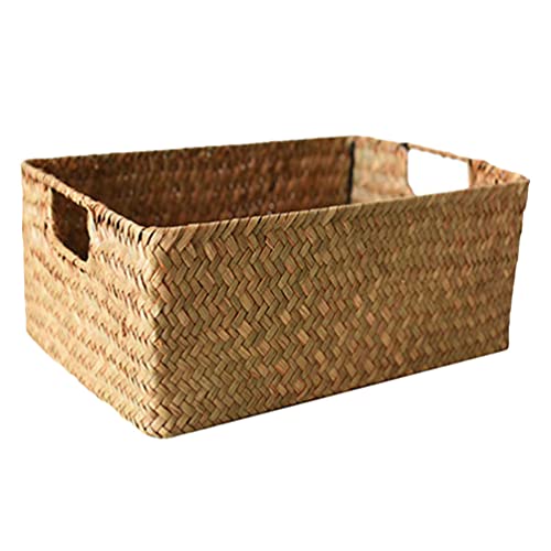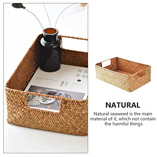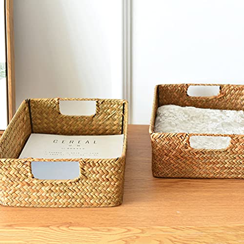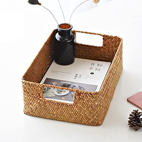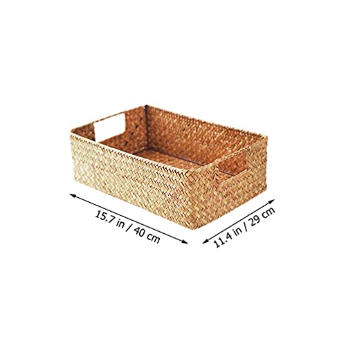 Cabilock Tessuti a Mano Rettangolare Cesto con Manico Cestino di Immagazzinaggio del Rattan Bidoni Decorativo di Vimini Vassoio per Cucina Bagno