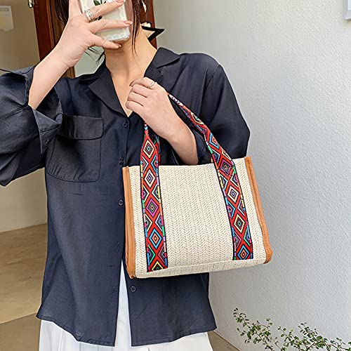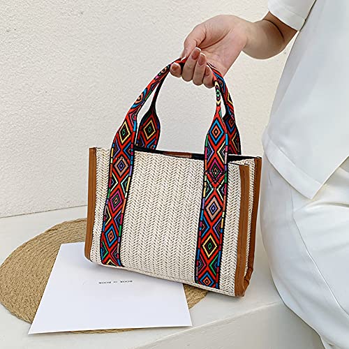 La Cabina Borsa a Mano in Paglia Intrecciata in Stile Etnico Borsa Tote Paglia Casual Elegante Borsa da Spiaggia Paglia Estiva Borsa Paglia Mare Donna (Beige)