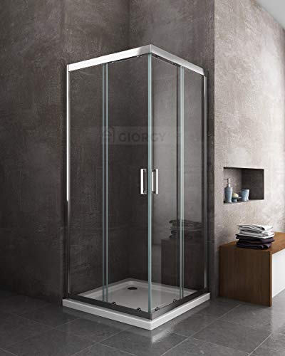 BOX CABINA DOCCIA BAGNO QUADRATO CROMO LASTRA EASYCLEAN TRASPARENTE 6 MM ANTICALCARE PROFILO CROMO ALLUMINIO ANGOLARE SCORREVOLE (77,5 x 80 x 77,5-80 H.190)