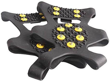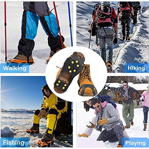 Ramponi antiscivolo: 10 tacchetti in acciaio sono distribuiti su tutta la suola. Con una copertura totale su tallone e avampiede per offrire un'eccellente trazione su ghiaccio e neve, le tacchette di trazione su neve ghiacciata potrebbero prevenire scivolamenti e cadute su ghiaccio, neve e pavimentazione bagnata.