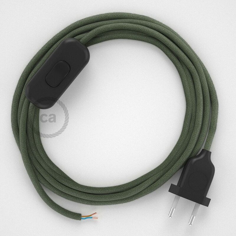 - trasparente, per dare ancora più risalto al cavo. Realizziamo su richiesta cablaggi con lunghezze diverse, contattaci per maggiori informazioni e per un preventivo. Cavo di alimentazione, cablaggio per lampada con spina e interruttore. Cavo Rotondo in Cotone. Colore cavo: RC63 Verde Grigio. Colore spina e interruttore: Nero, Bianco o Trasparente. Lunghezza cablaggio: 1,80 m (100 cm da spina a interruttore + 80 cm da interruttore a fine cavo) 2x0.75.