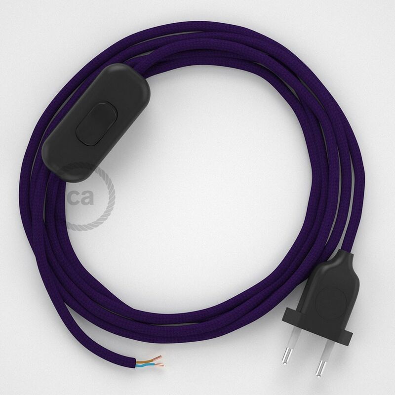 - trasparente, per dare ancora più risalto al cavo. Realizziamo su richiesta cablaggi con lunghezze diverse, contattaci per maggiori informazioni e per un preventivo. Cavo di alimentazione, cablaggio per lampada con spina e interruttore. Cavo Rotondo in tessuto Effetto Seta. Colore cavo: RM14 Viola. Colore spina e interruttore: Nero, Bianco o Trasparente. Lunghezza cablaggio: 1,80 m (100 cm da spina a interruttore + 80 cm da interruttore a fine cavo) 2x0.75.