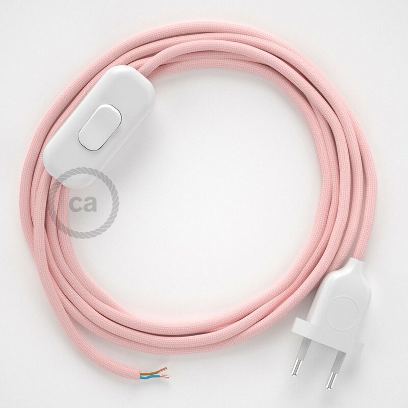 - trasparente, per dare ancora più risalto al cavo. Realizziamo su richiesta cablaggi con lunghezze diverse, contattaci per maggiori informazioni e per un preventivo. Cavo di alimentazione, cablaggio per lampada con spina e interruttore. Cavo Rotondo in tessuto Effetto Seta. Colore cavo: RM16 Rosa Baby. Colore spina e interruttore: Nero, Bianco o Trasparente. Lunghezza cablaggio: 1,80 m (100 cm da spina a interruttore + 80 cm da interruttore a fine cavo) 2x0.75.