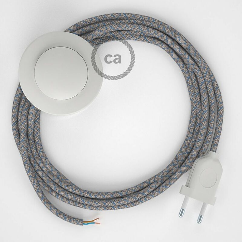 - trasparente, per dare ancora più risalto al cavo. Realizziamo su richiesta cablaggi con lunghezze diverse, contattaci per maggiori informazioni e per un preventivo. Cavo di alimentazione, cablaggio per piantana con spina e interruttore. Cavo Rotondo in Cotone e Lino Naturale. Colore cavo: RD65 Losanga Blu Steward. Colore spina e interruttore: Nero, Bianco o Trasparente. Lunghezza cablaggio: 3 m (100 cm da spina a interruttore + 200 cm da interruttore a fine