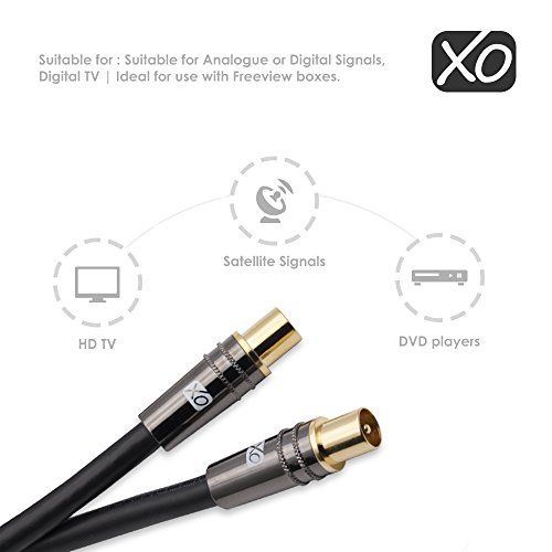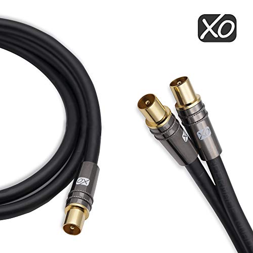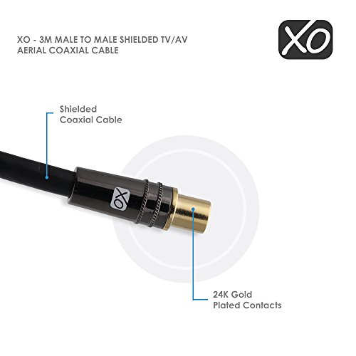 XO- Cable coassiale aereo 3m de maschio a maschio corazzato TV/AV Con connettore placcato in oro e conettore di metalo per TV UHF/RF per videoregistratori, lettori DVD,DVR,decoder dei cavi e satelite-NERO.