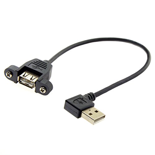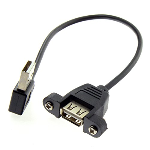 Cavo di prolunga USB 2.0 da maschio a femmina, con angolo a sinistra, 20 cm, con foro per montaggio a pannello