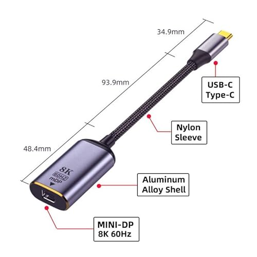 Il cavo USB-C x MINI-DP supporta 8K a 60Hz, 4K a 120Hz per desktop e laptop abilitati USB 4 USB-C Type-C per connettersi a schermi MINI-DP, goditi l'home theater con alta risoluzione 8K/4K.