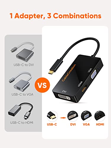 CableCreation 3 in 1 Hub, USB C to DVI (Alt DP mode) + HDMI Hub 4K + VGA, for MacBook Pro, Chromebook Pixel and devices that support USB-C (Compatible with Thunderbolt 3) black