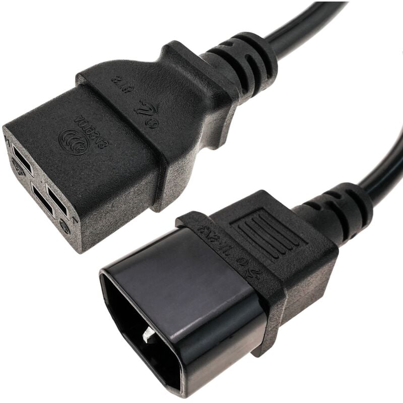 Cavi di alimentazione o gruppi di cavi di alimentazione di alta qualità e durevoli per il collegamento di apparecchiature a una fonte di alimentazione. Cavo dotato di una spina IEC C19 su un'estremità e una spina IEC C14 sul dispositivo all'altra estremità. Caratteristiche del prodotto: CARATTERISTICHE: Cavi di alimentazione per PC, computer o dispositivi elettronici basati su connettori IEC-60320. A un'estremità ha un connettore IEC-60320-C19 (femmina) su un'estremità e un connettore IEC-60320-C14 (maschio) sull'altra. Cavo tripolare da 3 m, conforme alle relative normative in termini di diametro (8 mm). La sezione del cavo è di 1,5 mm x 3 conduttori e supporta 3300 W (15 A/360 V CA). DESIGN: Con un design robusto e durevole, i connettori sono completamente modellati per resistenza e durata, offrendo un affidabile scarico della trazione e contribuendo a facilitare la connessione e migliorare la protezione. INSTALLAZIONE: i cavi di alimentazione IEC sono utilizzati per apparecchi IEC
