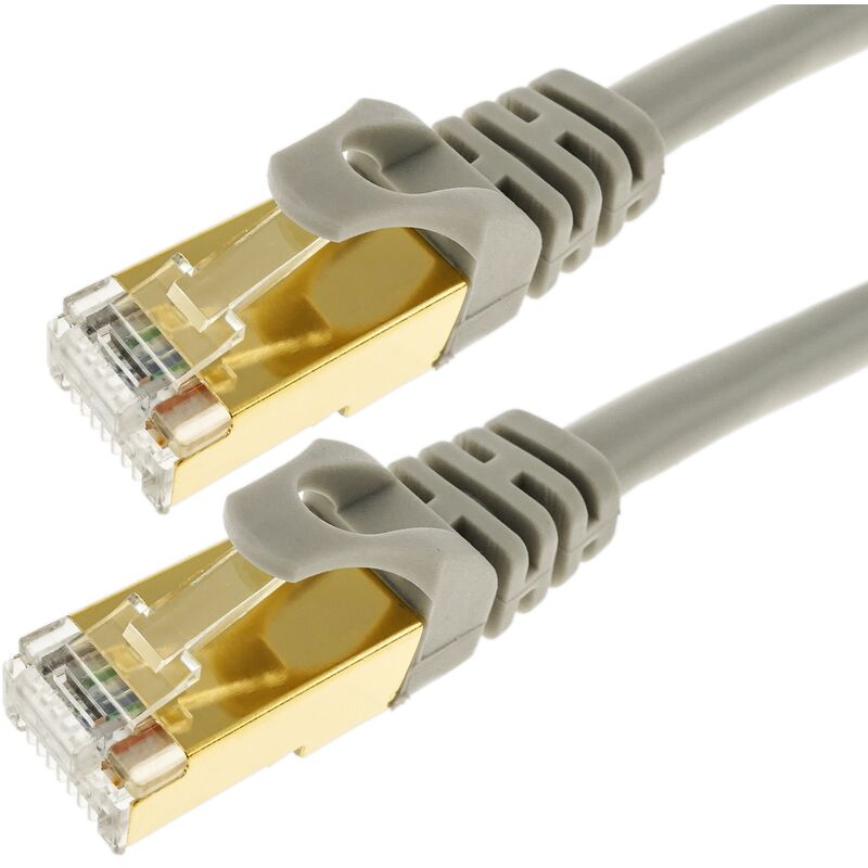 Cavo SSTP (Super Shielded Twisted Pair) twistato con connettori maschio con copertura in gomma alle due estremità di colore grigio br> Caratteristiche del prodotto MATERIALE: Cavo SSTP grigio di categoria 7 rivestito in gomma alle estremità NORMATIVA: I connettori che presenta sono RJ45 Maschio e sono conformi alla normativa internazionale IEC 60332-1-2 relativa alla non propagazione della fiamma, inoltre sono conformi anche a quella ANSI/TIA/EIA, ISO/IEC e CENELEC EN per quanto riguarda i cavi di categoria 7 INFORMAZIONI: Questi cavi sono adatti per 10 Gigabit Ethernet MISURE: Il cavo è lungo 5 m con una larghezza di banda di 600 MHz SPECIFICHE: Il cavo SFTP fornisce una doppia protezione, ogni coppia di cavo è schermata e quindi ha una nuova schermatura per le 4 coppie di cavo twistato IDEALE: Questo tipo di cavi ethernet può essere utilizzato sia a livello domestico per collegare il router ai diversi dispositivi, sia per effettuare una connessione tra di loro.